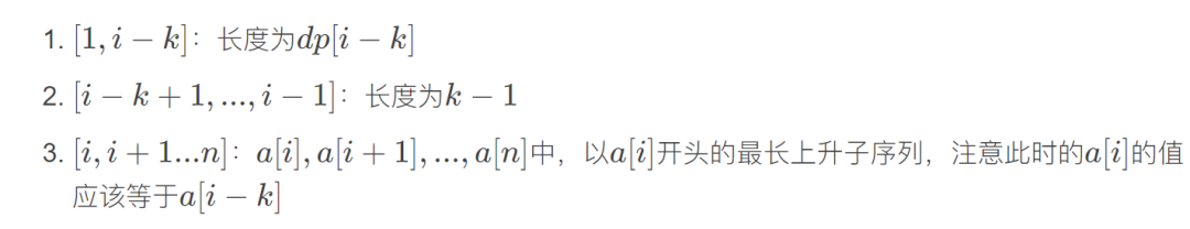 结尾的最长不下降子序列长度,对于修改连续的K 个数字变成同一值,最好修改成与前面一样的数字,即: