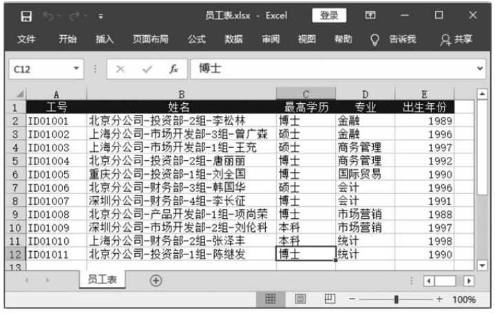 此案例主要通过在while循环中多次使用Python语言的字符串的partition()方法,从而实现在工作表中将包含多个指定字符('-')的一列拆分为多列。当运行此案例的Python代码(A325.py文件)之后,将把“员工表.xlsx”文件的员工表的姓名列拆分为分公司列、部门列、组名列、姓名列,代码运行前后的效果分别如图1和图2所示。