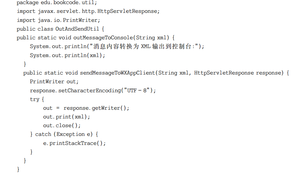 在包edu.bookcode.util中创建类 OutAndSendUtil,代码如例4-22所示。
