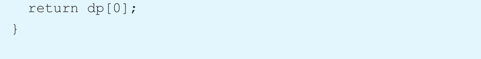 因为算法是从最后两个 dp值开始倒推的,所以当需要计算 dp[i]时, dp[i+1]和 dp[i+2]都应该已经被计算出来了,这样就避免了重复计算。最后推出来的 dp[0]就是需要的结果。