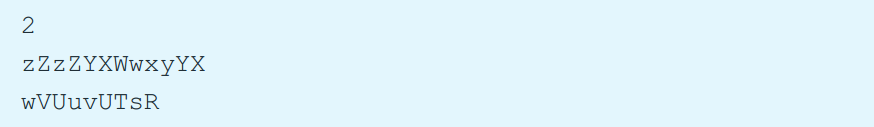 第一行给出一个不超过 100的正整数 N。随后的 N行,每行给出一位学生的作业,即仅由英文字母组成的非空字母串,长度不超过 2×106。