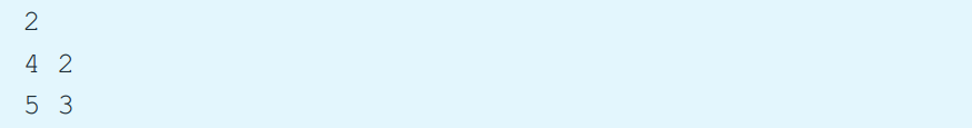 在一行中给出一个正整数 N(N≤10),随后的 N行,每行给出两个正整数 A和 B,即两种元素的编号。假设金、木、水、火、土的编号依次为 1、 2、3、4、5。