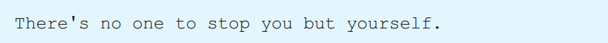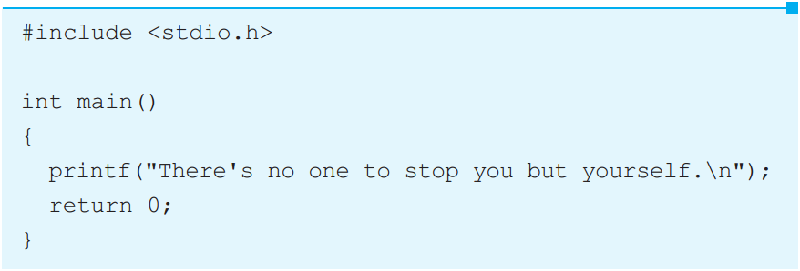 在 PAT首页上有一句英文:“There’s no one to stop you but yourself.”(能困我者唯己身而已)。本题就请你直接在屏幕上输出这句话。