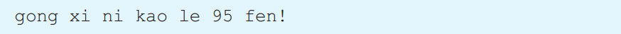 当小朋友告诉你他考了 x分的时候,你要回答说:“恭喜你考了 x分!”。比如小明告诉你他考了 90分,你就用汉语拼音打出 “gong xi ni kao le 90 fen!”。