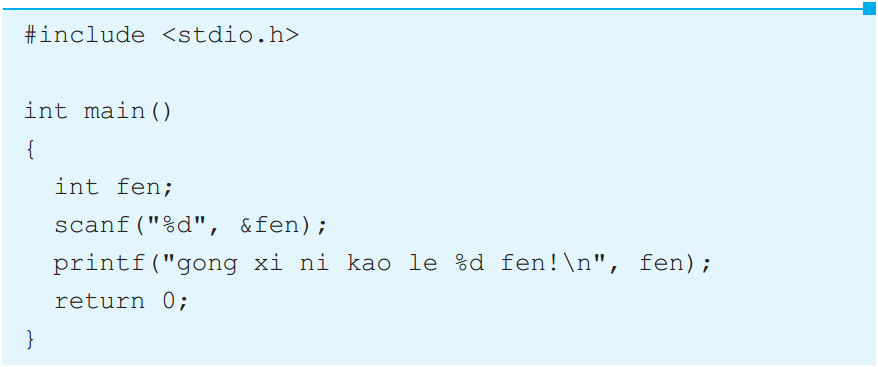 在一行中输出“ gong xi ni kao le X fen!”这句话,其中 X是小朋友输入的分数。