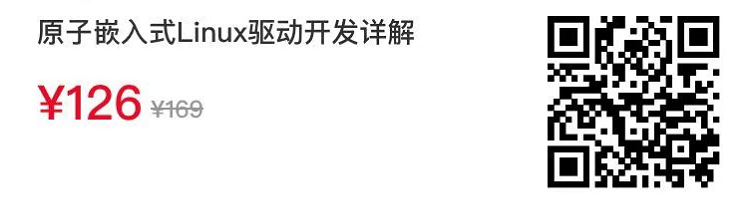 更多嵌入式Linux驱动开发好内容都在《原子嵌入式Linux驱动开发详解》图书中,扫描下图即可优惠购买。