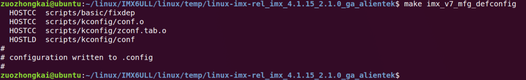 第3行,使用默认配置文件imx_alientek_emmc_defconfig来配置Linux内核。