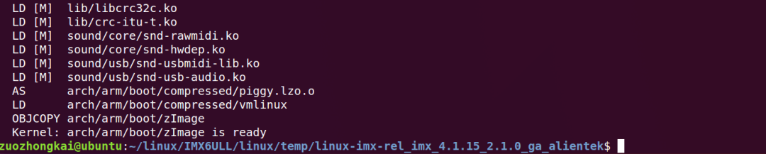 ./imx6ull_alientek_emmc.sh //执行shell脚本编译内核