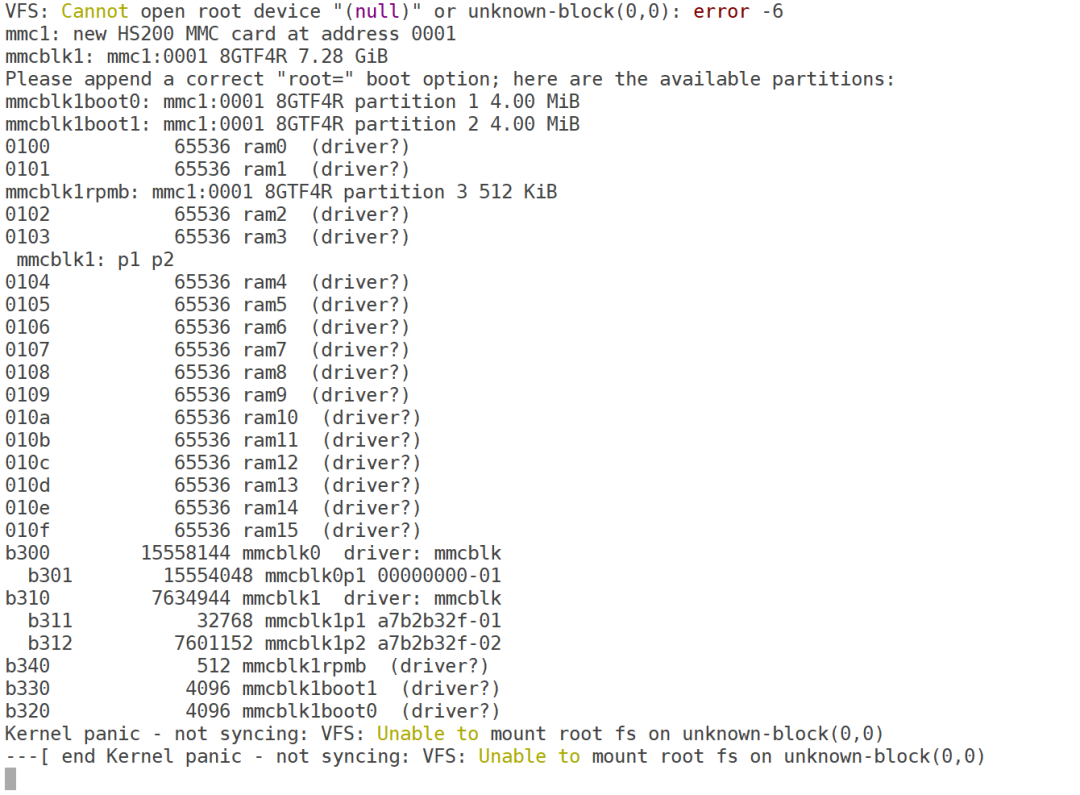 Kernel panic - not syncing: VFS: Unable to mount root fs on unknown-block(0,0)