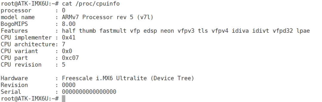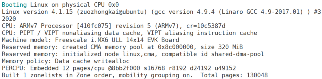 Linux内核启动成功,说明我们已经在NXP提供的Linux内核源码中添加了正点原子I.MX6UL-ALPHA开发板。