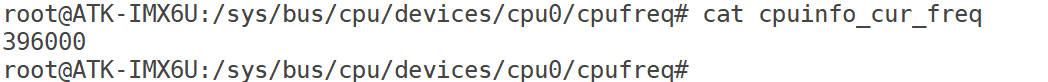 修改完成以后重新编译Linux内核,编译之前先清理一下工程!因为我们重新修改过默认配置文件了,编译完成以后使用新的zImage镜像文件重新启动Linux。再次查看/sys/devices/system/cpu/cpu0/cpufreq/ cpuinfo_cur_freq文件的值,如图34-14所示: