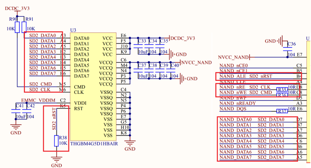 正点原子EMMC版本核心板上的EMMC采用的8位数据线,原理图如图34-18所示: