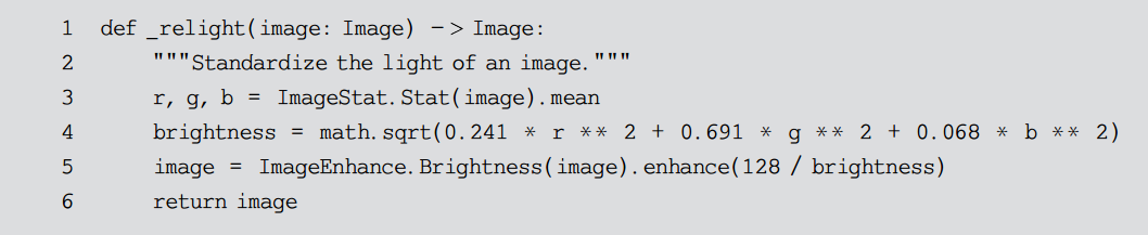 ImageStat和 ImageEnhance 分别是 PIL 中的两个工具类。顾名思义 ImageStat 可以对图片中每个通道进行统计分析,代码清单10-3中就对图片的三个通道分别求得了平均值;ImageEnhance 用于图像增强,常见用法包括调整图片的亮度、对比度以及锐度等。