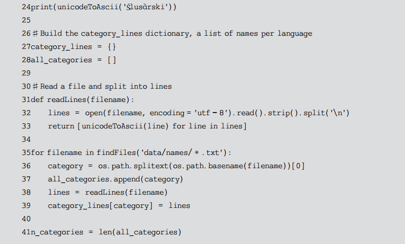 解压缩上述数据得到18个txt文件,将它们放置在data/names目录下。下面提供一段代码做预处理。