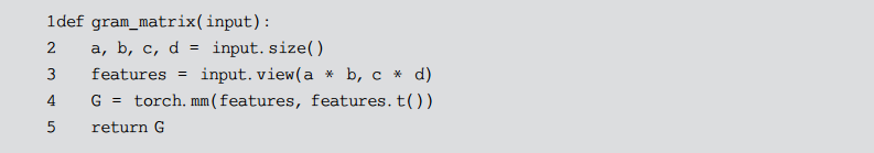 因为PyTorch传入数据必须以批的形式,传入的input的大小为[batch_size, channels, height, width]。计算Gram矩阵时,先用view方法改变张量的形状,然后再将它与它自己转置进行点积即可。