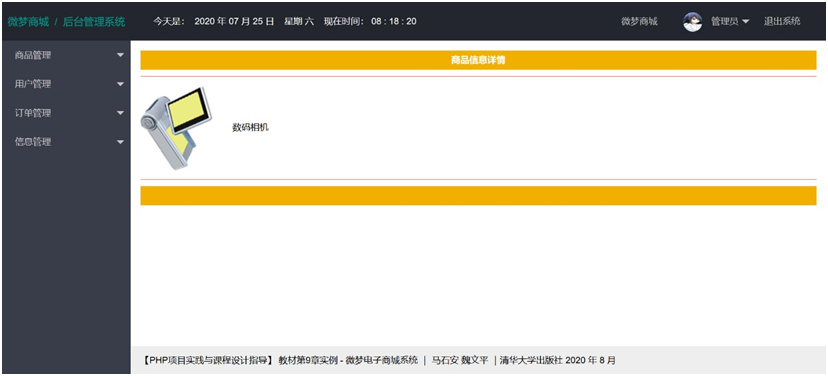 图9.20展示的是全部商品信息列表,单击页面中的“详情”按钮,则显示商品的详细信息,如图9.21所示。