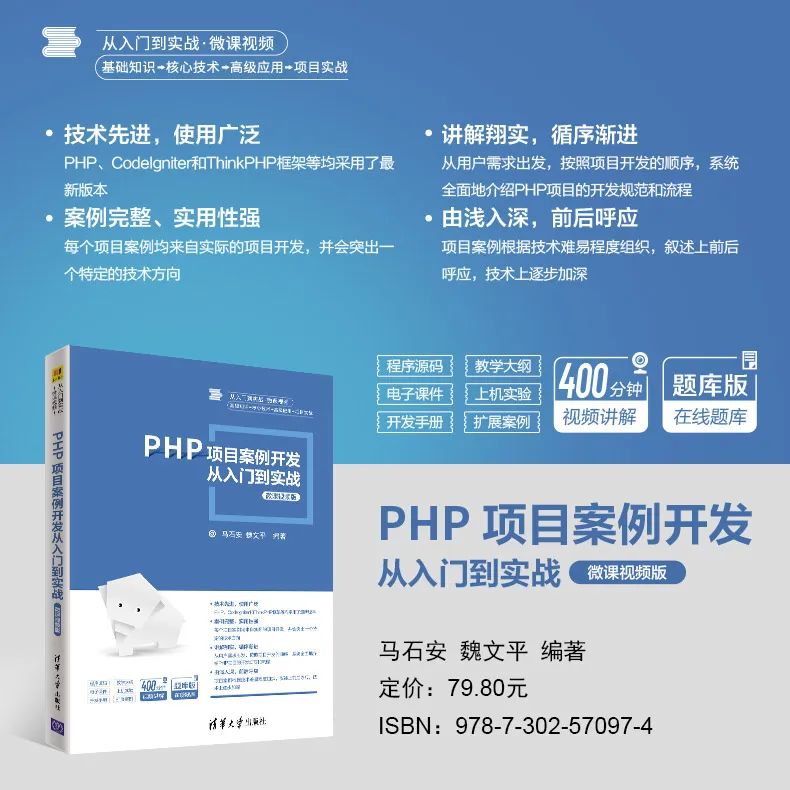 本书结构清晰、语言简练、内容翔实,具有系统性、综合性和实用性等特点。书中选配的6个项目案例均来自实际,全面覆盖了PHP项目开发的基础理论知识及技术规范,并配套了同步的视频讲解,非常适合具备基本的计算机程序设计知识以及Web技术知识的读者。