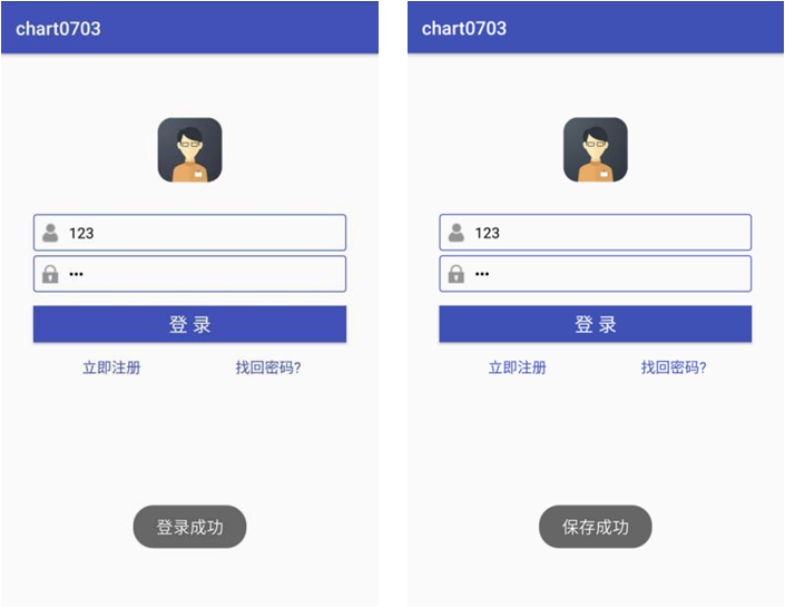 45 Toast.makeText(MainActivity.this, "保存成功", Toast.LENGTH_SHORT).show();