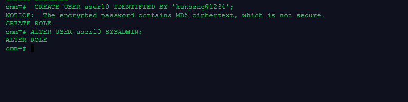 CREATE USER user10 IDENTIFIED BY 'kunpeng@1234';