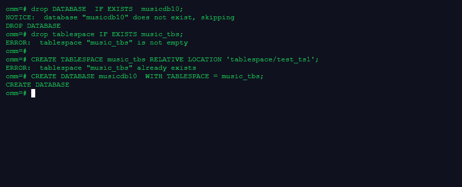 CREATE DATABASE musicdb10 WITH TABLESPACE = music_tbs;