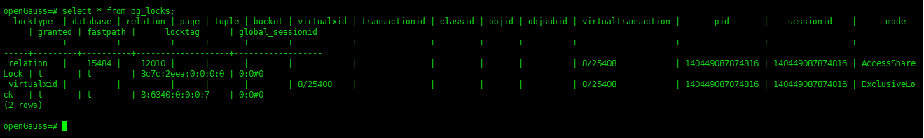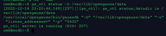omm 39892 39843 0 00:28 pts/1 00:00:00 grep --color=auto gaussdb