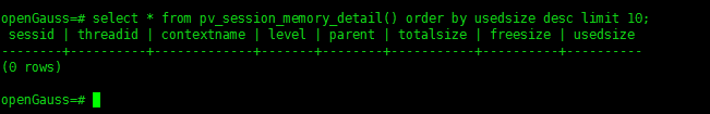select * from pv_session_memory_detail() order by usedsize desc limit 10;