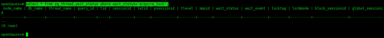 select * from pg_thread_wait_status where wait_status='acquire_lock';