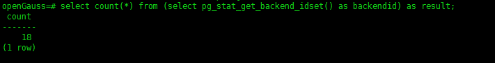 select count(*) from (select pg_stat_get_backend_idset() as backendid) as result;