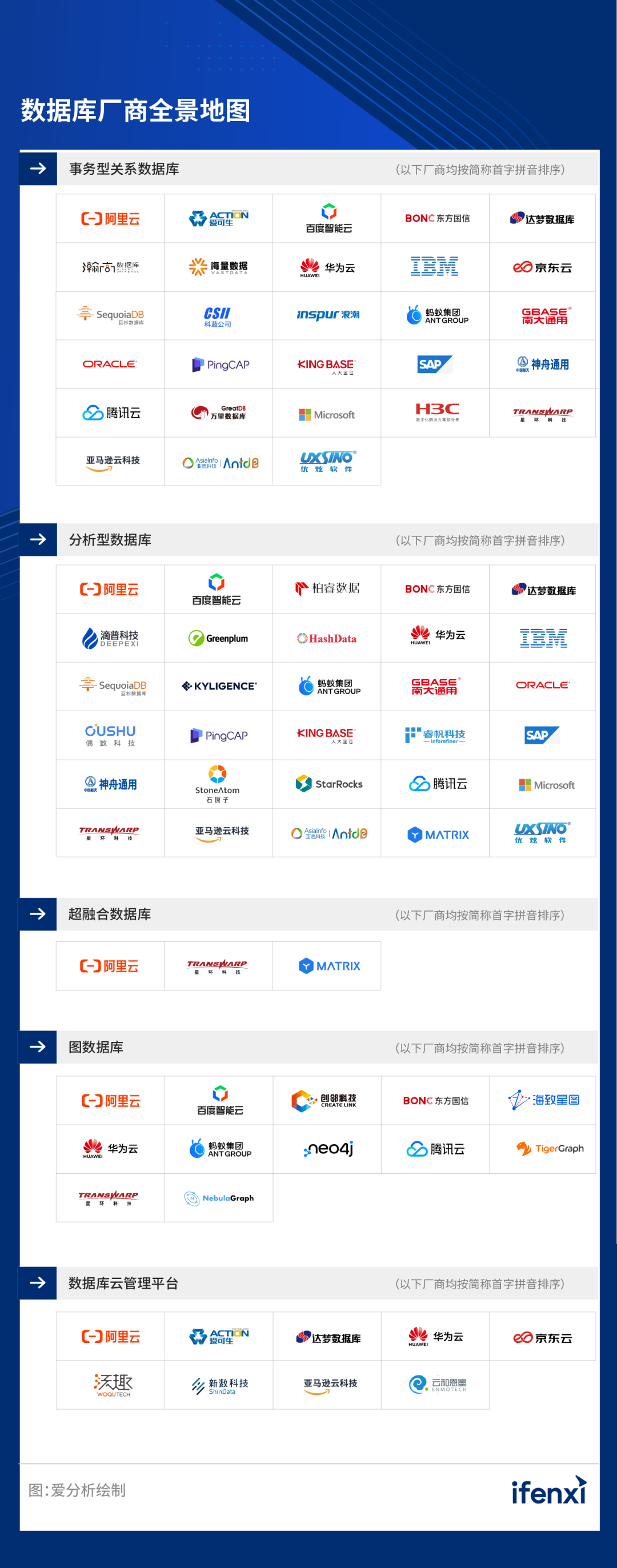 爱分析基于对甲方企业和典型厂商的调研以及桌面研究,遴选出在数据库各市场中具备成熟产品和解决方案的入选厂商。