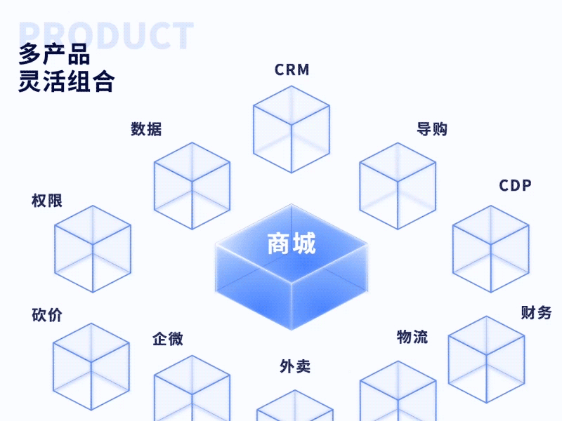 第一,“产品设计原子化,灵活匹配用户需求”,也就是把产品做最小颗粒的切割,产品和产品之间就像插头一样,轻松地实现插拔和连接,按照商家需求快速组合成一套解决方案;同时在WOS体系内,所有产品都是平等的,内外无别,包括商家自建、生态伙伴创建的所有产品均可无缝对接,灵活切换。
