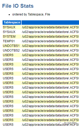 这套RAC系统居然把数据文件存放在ACFS上了,在11.2.0.4上使用ACFS还是有很多坑的。从这里我们又发现了一条新的线索,是不是因为ACFS的BUG导致了IO性能问题,进而引发了这个问题呢?这就需要日志和TRACE的信息了,在AWR报告里我们是找不到答案的。