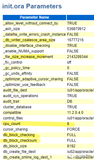 从参数小节里,我们也发现了一些异常,很多配置是来自于Oracle ODA一体机的配置模板,难道这是一台Oracle一体机?另外cpu_count=8也是有些异常的,因为从OS信息可以看出这是一台两路服务器,36核的。难道说这台服务器上还有其他数据库实例?