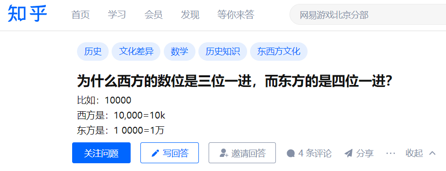 首先,回答题主的问题,为什么为什么西方的数位是3位一进,而东方的是4位一进?