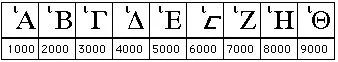 本来呢,呆萌的希腊人觉得千位加个数标凑活用就得了呗,结果发现还有更大的数字,可是字母表都用完了啊肿么办?