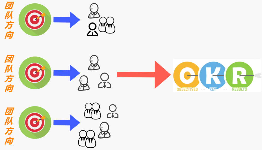 什么是自上而下?我们的实践是,目标根据组织架构逐层往下传递。公司战略传递到团队后,团队并不是简单的对上一级目标进行拆分,而是要理解战略,结合团队状况制定OKR。而团队目标,同样需要成员进行支撑。