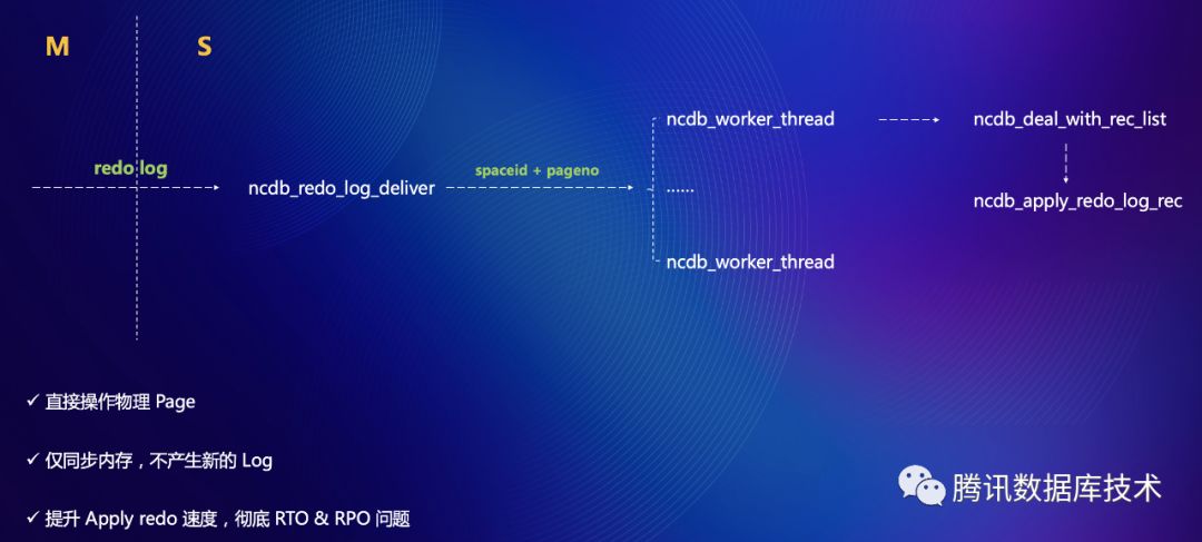 (1)存储层收到备库下推的 redo log,可以并行 apply redo log 到相应的 page;