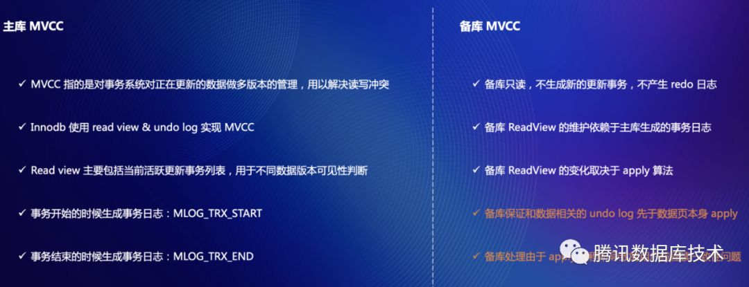 (4)由于 MVCC 的存在,如何保证相关修改的 undo log 先于修改本身产生的 redo log 先执行,先执行系统 undo,再执行数据页的 redo log,但是这样的批量apply 对于用户读线程有一定的阻塞行为,将会导致用户线程等待 undo log 执行完释放数据页,进而导致 TXStore 中 redo log 的堆积,影响稳定性。