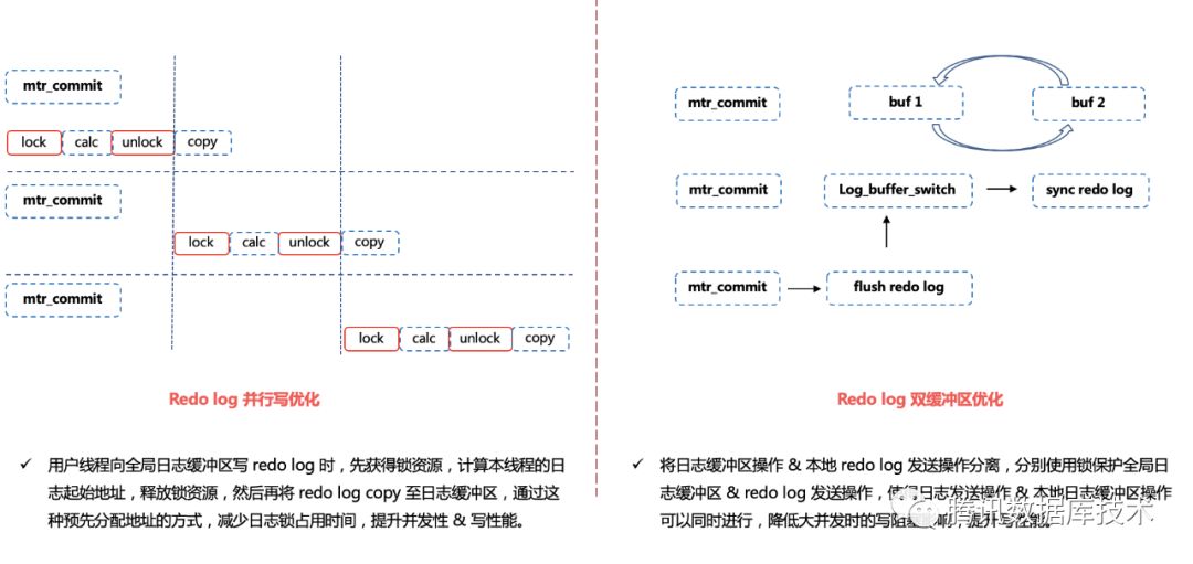 (2)并行 copy redo log,降低占用 log_sys->mutex 的上锁时间,提升并发性;