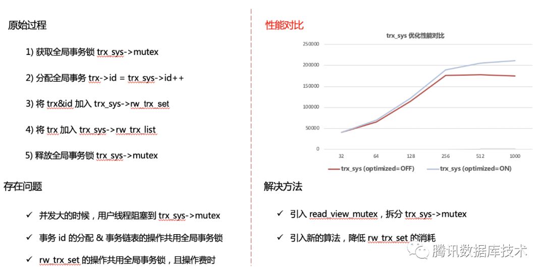 (3) 事务系统优化,解决 trx_sys->mutex 瓶颈问题;