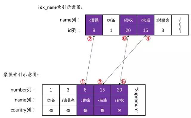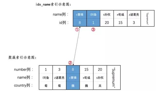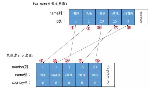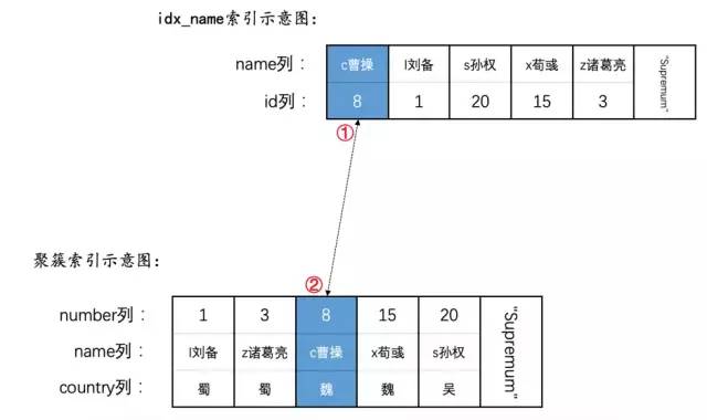 的示意图中可以看出,所有的用户记录都满足name >= 'c曹操'