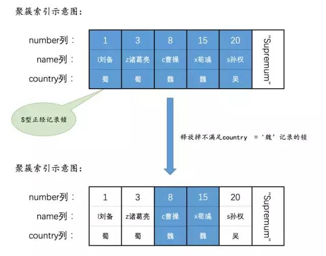 的记录也加一个锁,之后又判断它不符合边界条件而把锁释放掉。而对于查询条件name <= 'c曹操'