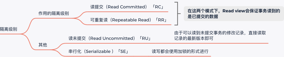 对于 ReadView 来说,在不同的隔离级别下它们的创建与关闭时机会存在区别,具体如下: