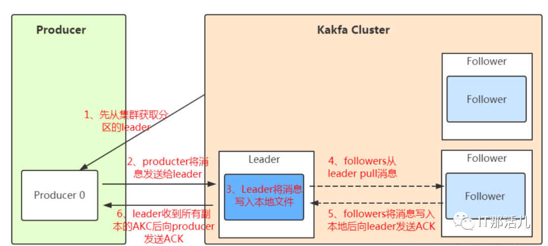 通过上图中的通过ACK应答机制!在生产者向队列写入数据的时候可以设置参数来确定是否确认kafka接收到数据,这个参数可设置的值为0、1、all。