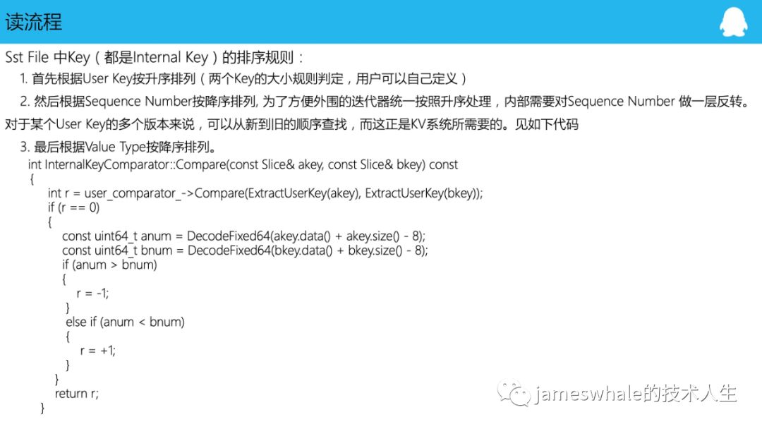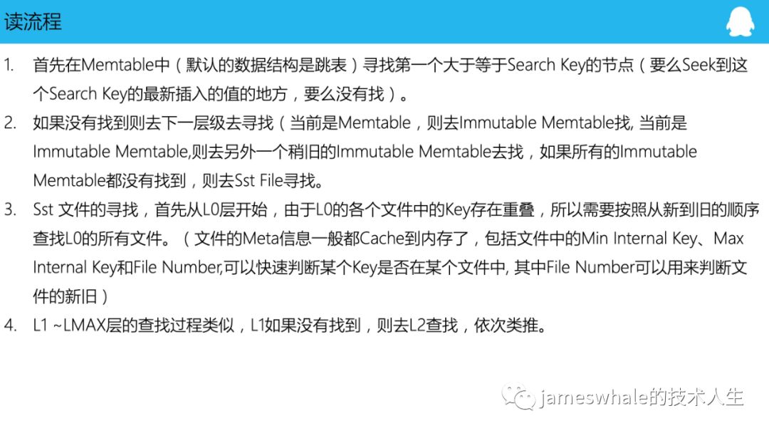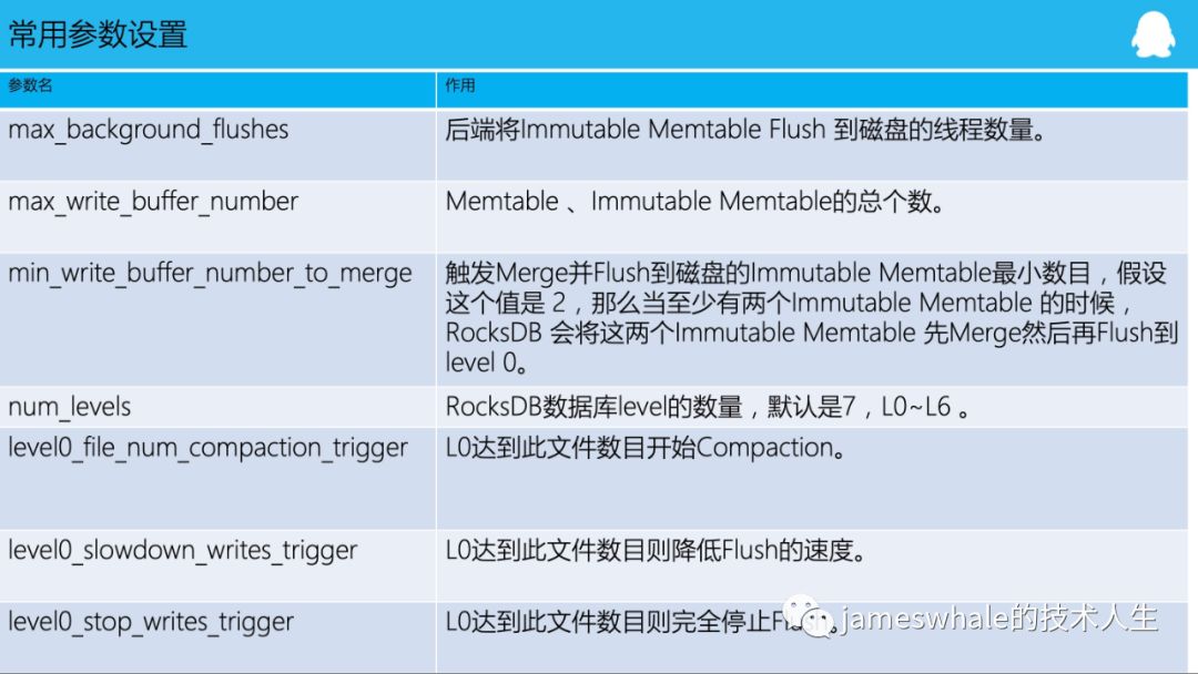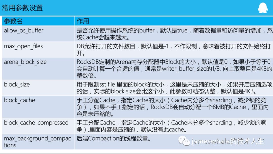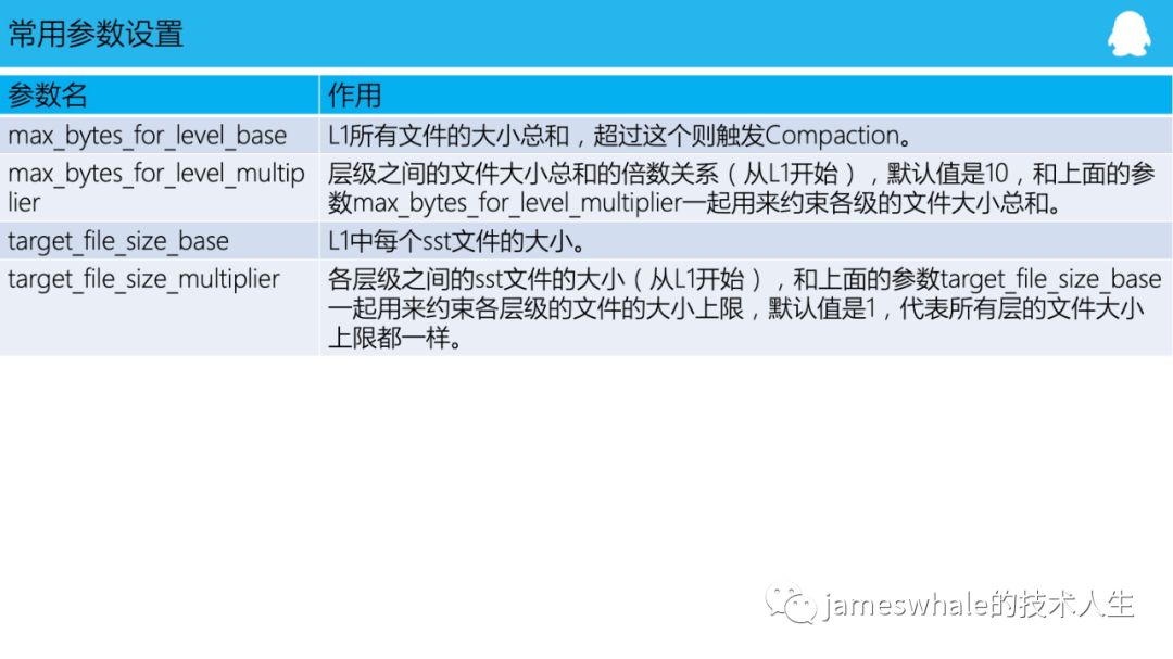 LevelDB只能单线程合并文件,RocksDB可以支持多线程,充分利用服务器多核来加快文件合并的速度。 LevelDB只有一个Memtable,若Memtable满了还没有来得及Flush到sst文件,则会引起系统停顿,RocksDB可以根据服务器内存情况开辟多个Immutable Memtable,有效缓解这一问题。 LevelDB每次只能获取1个KV,RocksDB支持批量获取。 LevleDB不支持备份和恢复,RocksDB支持增量备份、全量备份和恢复。 RocksDB增加了对列族的支持。 RocksDB增加了Merge特性,对于Read-Modify-Update场景,不需要Read操作,只需要写入修改的类型和数据,在Get、Iterator、Compaction操作的时候进行具体的Merge操作。 在RocksDB中,许多参数开关可动态调整,例如:Index Block和Bloom Filter Block是否加载到内存、L0文件的Index Block和Bloom Filter Block是否常驻内存、触发Flush的Slowdown和Stop行为的L0文件数目。 可监听RocksDB内部的多种行为,包括Immutable Memtable Flush到L0 sst文件结束的时间点、sst文件合并完成的时间点、sst文件创建开始和创建完成的时间点、sst文件删除的时间点等。