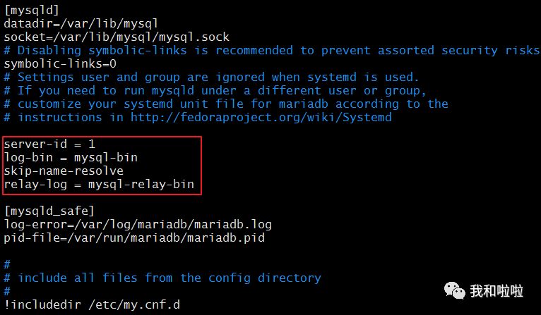 3 server-id = 1 //复制集群中的各节点的id均必须唯一