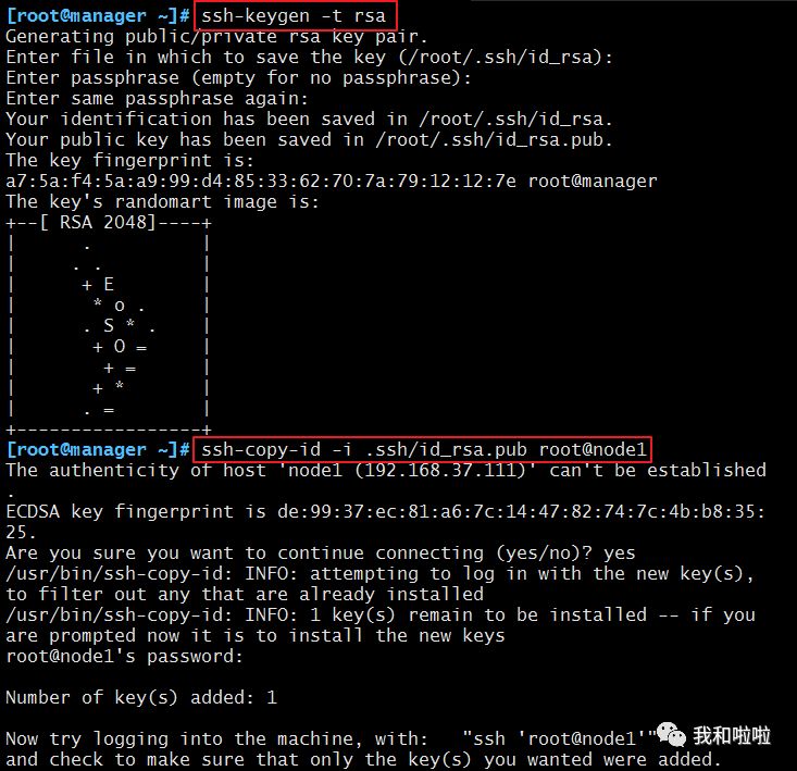 2[root@manager ~]# ssh-copy-id -i .ssh/id_rsa.pub root@node1