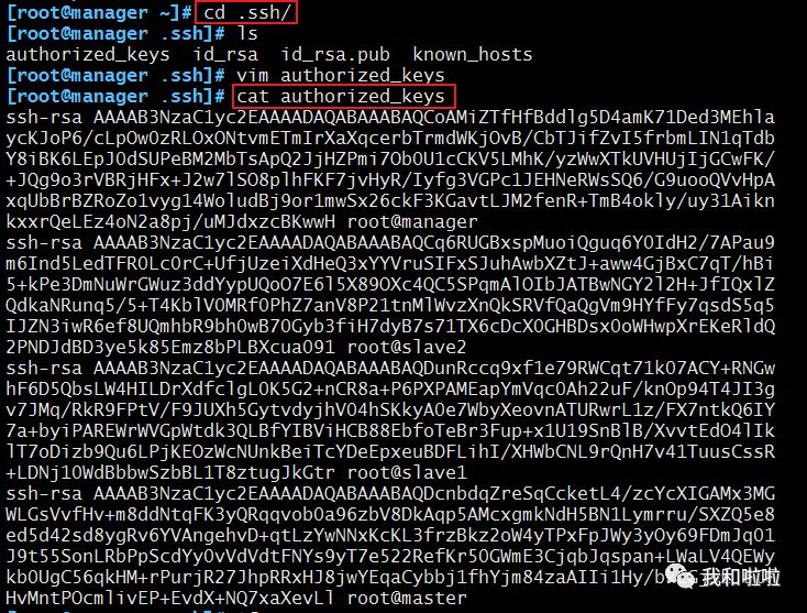 简单起见,可在Manager节点生成密钥对儿,并设置其可远程连接本地主机后, 将私钥文件及authorized_keys文件复制给余下的所有节点即可。