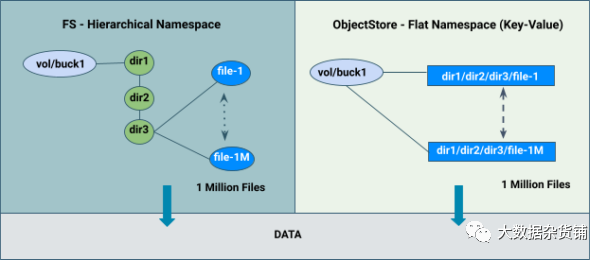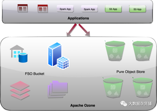 统一设计表示存储在单个系统中的文件、目录和对象。Apache Ozone 通过在元数据命名空间服务器中引入存储桶类型,通过使用一些新颖的架构选择来实现这一重要功能。这允许单个 Ozone 集群通过有效地存储文件、目录、对象和存储桶来同时具备 Hadoop 核心文件系统 (HCFS) 和对象存储(如 Amazon S3)功能的功能。它消除了将数据从对象存储移植到文件系统的需要,以便分析应用程序可以读取它。相同的数据可以作为对象或文件读取。