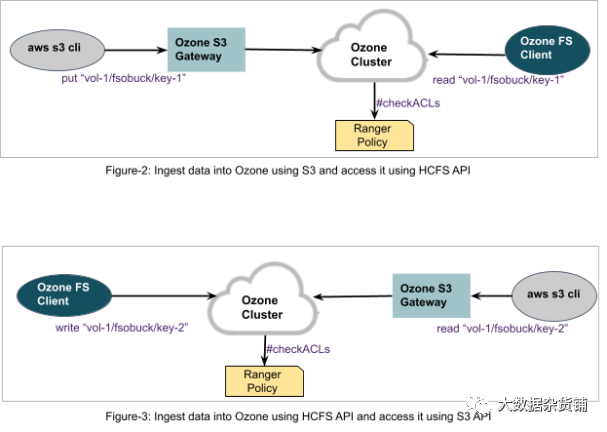 例如,用户可以使用 Ozone S3 API* 将数据摄取到 Apache Ozone,并且可以使用 Apache Hadoop 兼容的文件系统接口访问相同的数据,反之亦然。