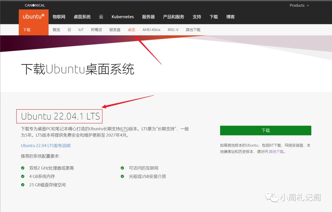 登陆Ubuntu官网https://www.ubuntu.com,下载LTS镜像,LTS是长期支持的意思。
